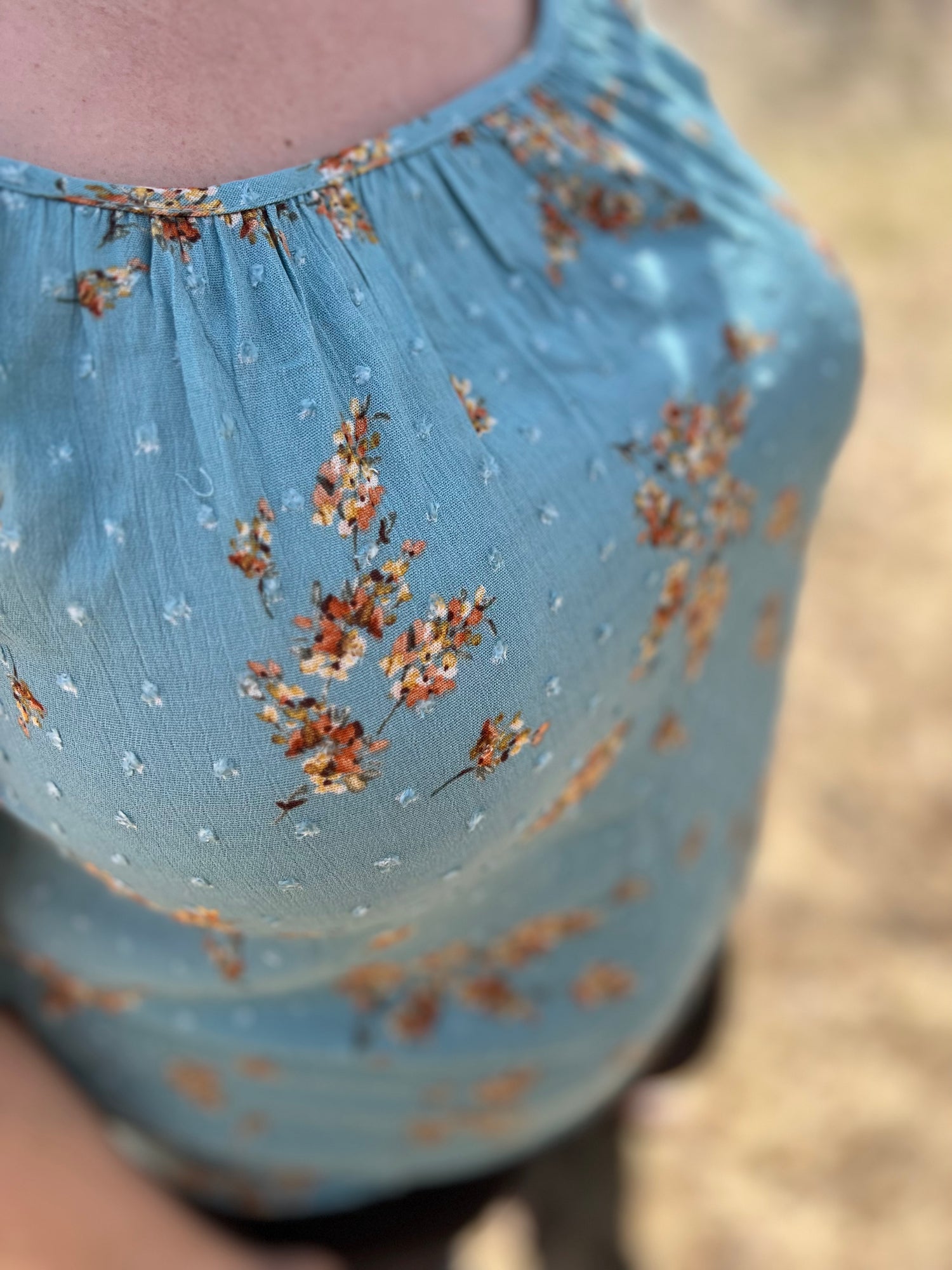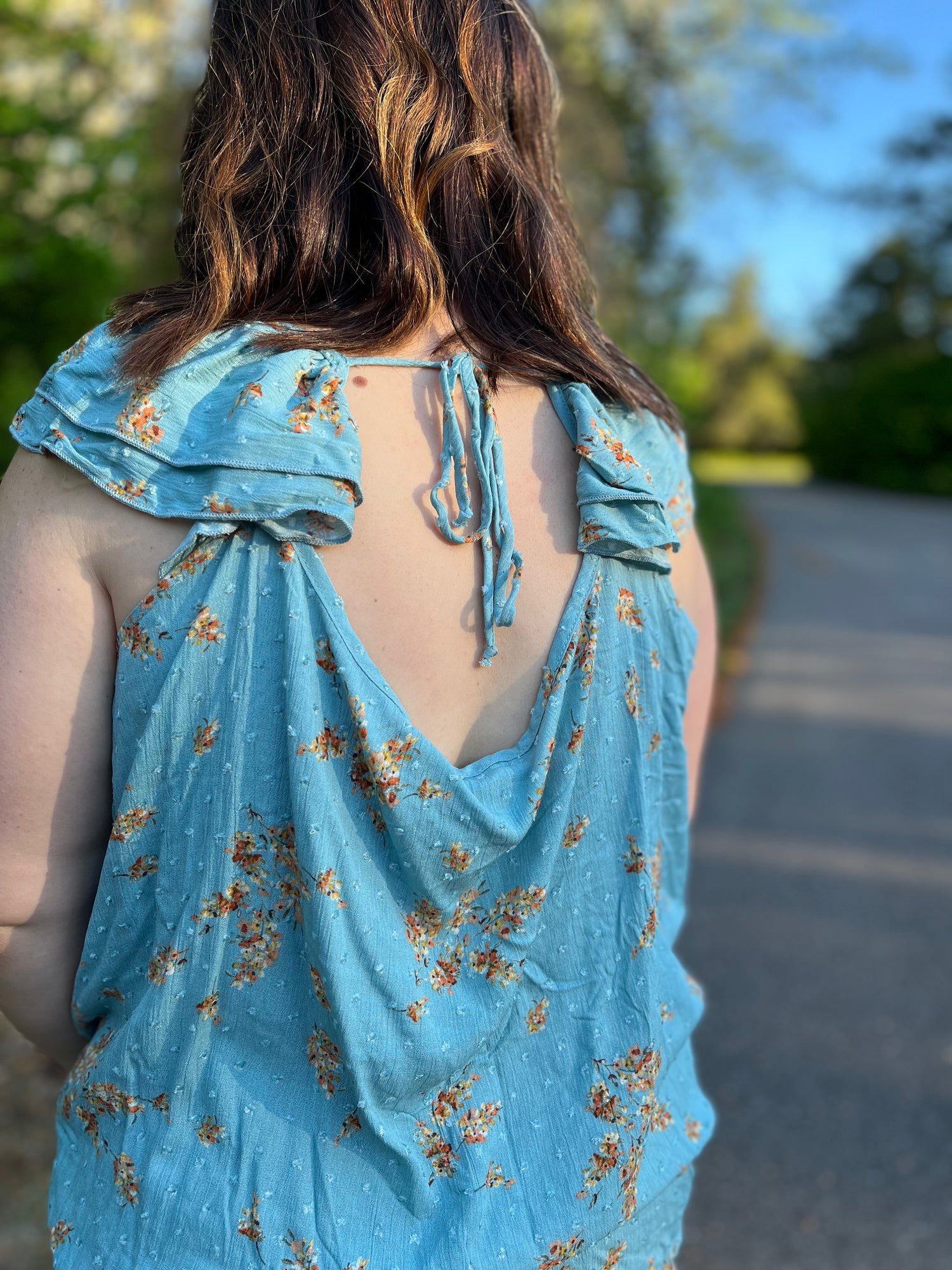 Stay stylish and cool in the summer heat with this delightful Light Teal Floral Top! Its lightweight flowery fabric and ruffled sleeves provide a graceful and modern look, perfect for any occasion, day or night. Hey, good lookin'!